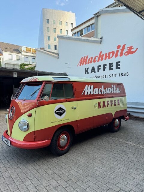 Der Machwitz Bulli ist häufig als Kaffeemobil unterwegs und kann auch für Veranstaltungen gebucht werden. Mittlerweile gehört zum Bulli auch noch ein Westfalia Verkaufsangänger von 1953, der ebefalls als Kaffeewagen genutzt wird.